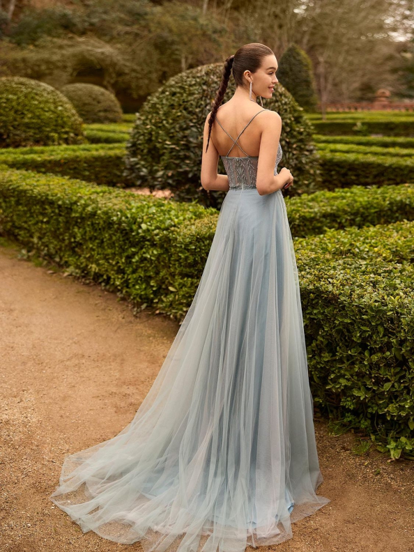 Cena pronájmu společenských šatů je od 4.900 Kč. Prodej společenských šatů od 15.000 Kč. Více informací najdete v ceníku a půjčovním řádu.